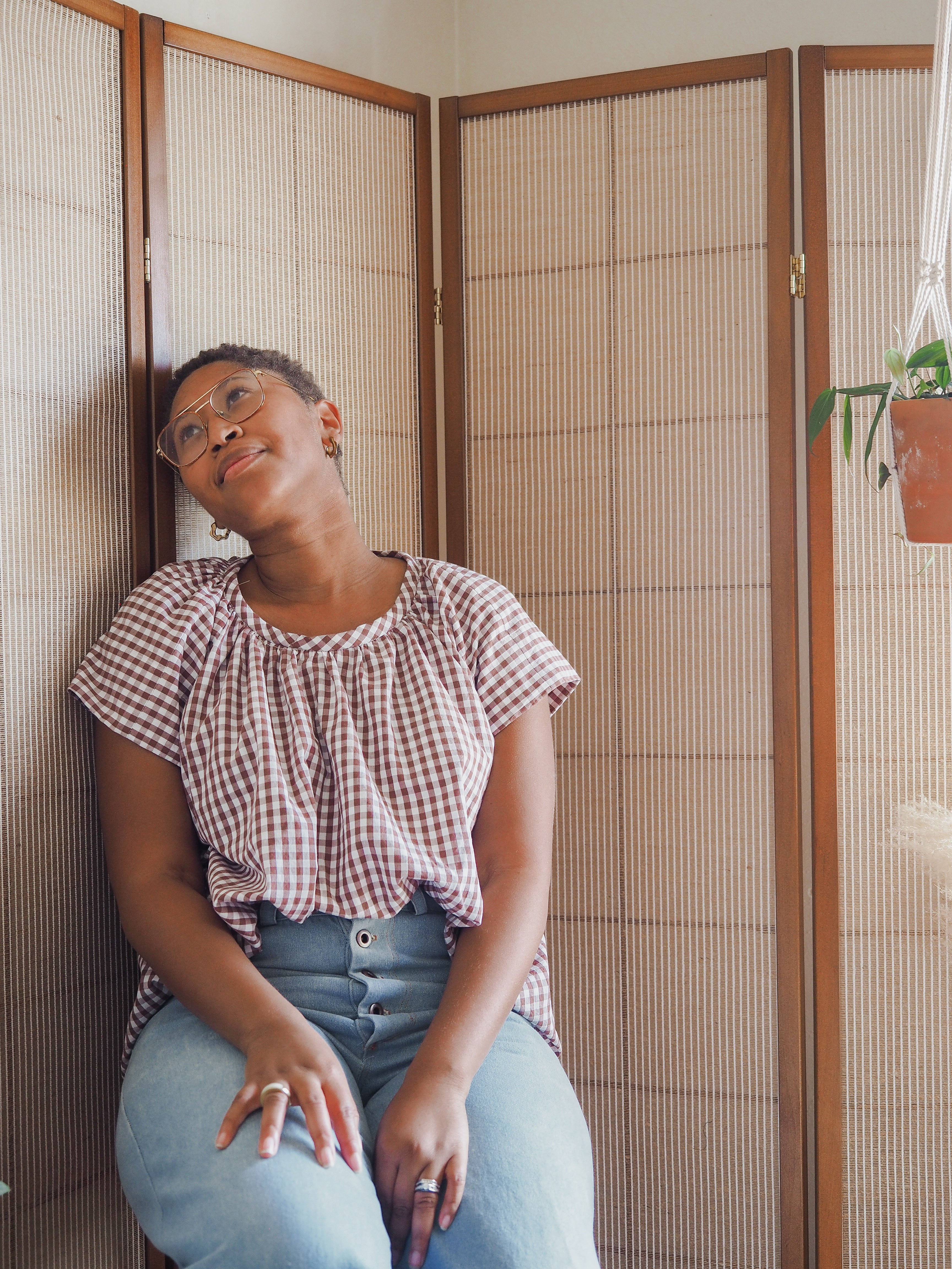 Sleeveless Brown Check Photinia Top (Zero Waste)